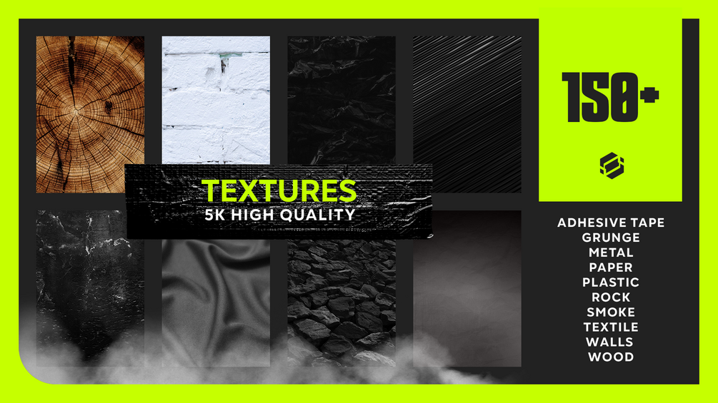 Wood, Adhesive Tape, Plastic, Grunge, Paper, Walls, Textile, Smoke, Rock, Metal.