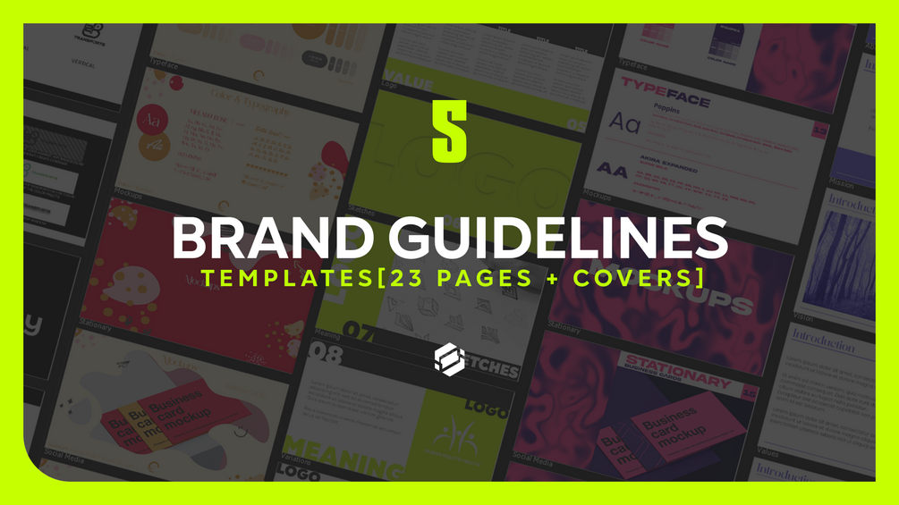 📘 5 Brand Guidelines (20+ Pages Each): Comprehensive templates to guide the visual consistency of your brand.